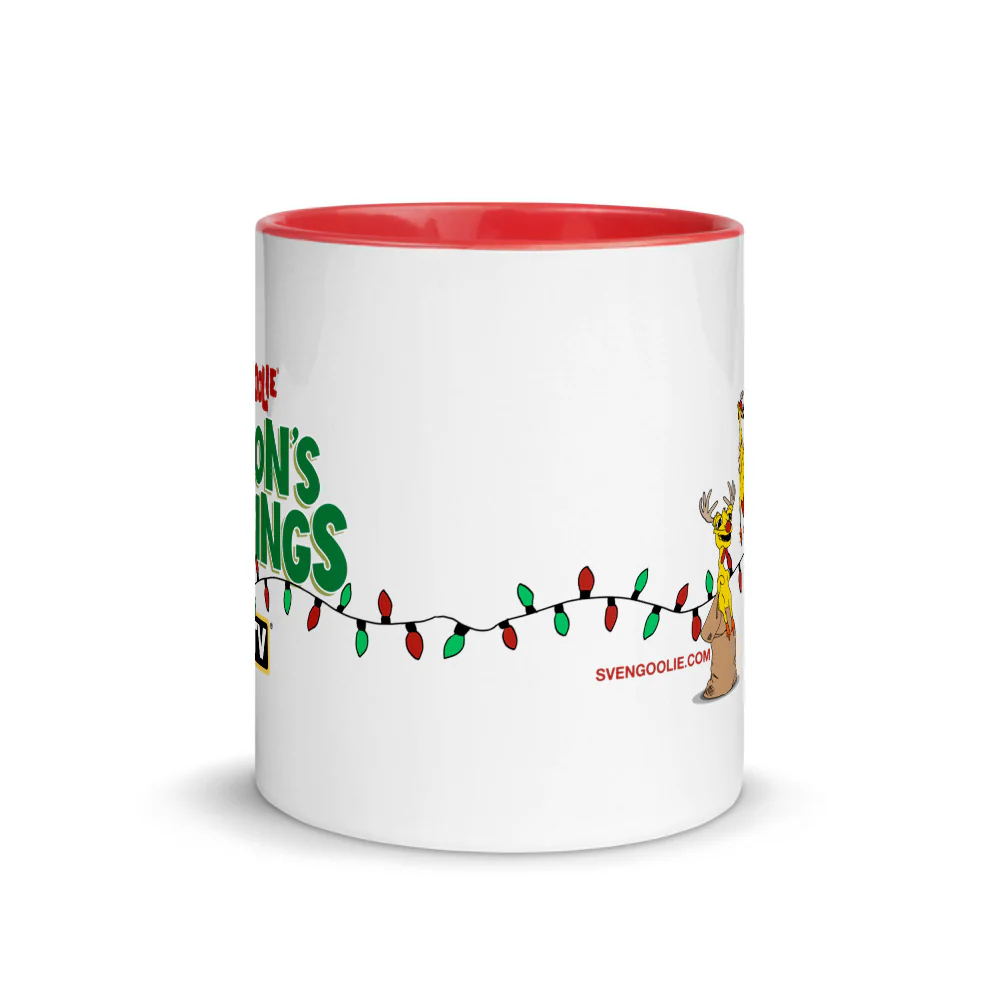 This mug is part of our Svengoolie holiday collection of 3 mug designs. You can buy all 3 for a limited time! The 2020 Holiday Wreath mug, the 2021 Wrapped Up mug, and the 2021 Illustrated Holiday mug.